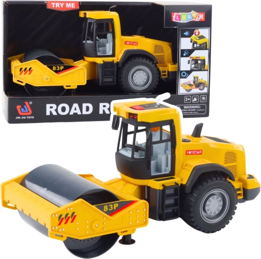 A realistic construction roller for young construction machine fans featuring light and sound effects, a rotating drum, and a durable build made from safe materials. Great for themed play indoors and outdoors, it fosters imagination and fine motor skills.