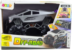 This modern off-road pickup combines a durable build with an attractive design and smooth handling. 2.4 GHz technology ensures a stable, interference-free signal, LED lights enhance the look, and the smoke-imitating spray adds a realistic atmosphere to the ride.