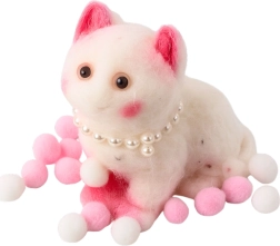 A cute anti-stress toy in the shape of a white kitten offers a soft, elastic feel and pleasant squeezing for stress relief. The surface with faux fur, a decorative pearl necklace, and white–pink pom-poms gives it an elegant look. Ideal for relaxation, sensory play, and as a stylish desk decoration.