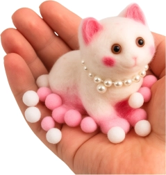 The realistic look with faux fur, gentle white–pink pom-poms, and a pearl necklace makes it not only an anti-stress accessory but also a decorative ornament for your desk or shelf. Suitable for children and adults, ideal for sensory exercises, hand therapy, and developing fine motor skills.