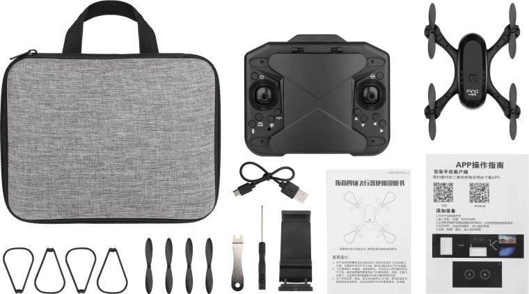 - Compact dimensions of the drone 9×9×4 cm, easily stored in the controller.