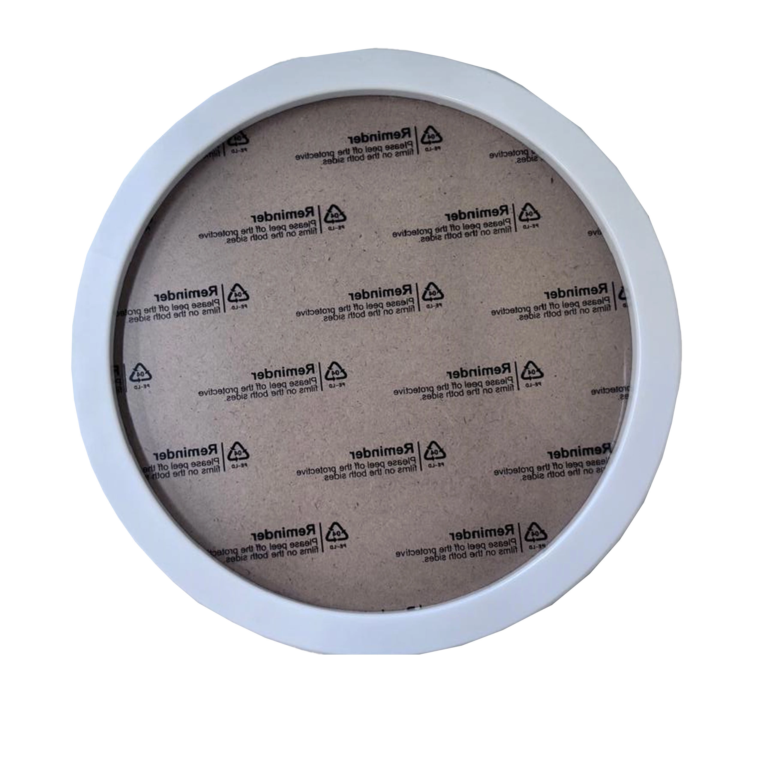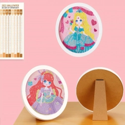 The round frame with an integrated stand lets you place the finished picture on a table or shelf with no extra work.