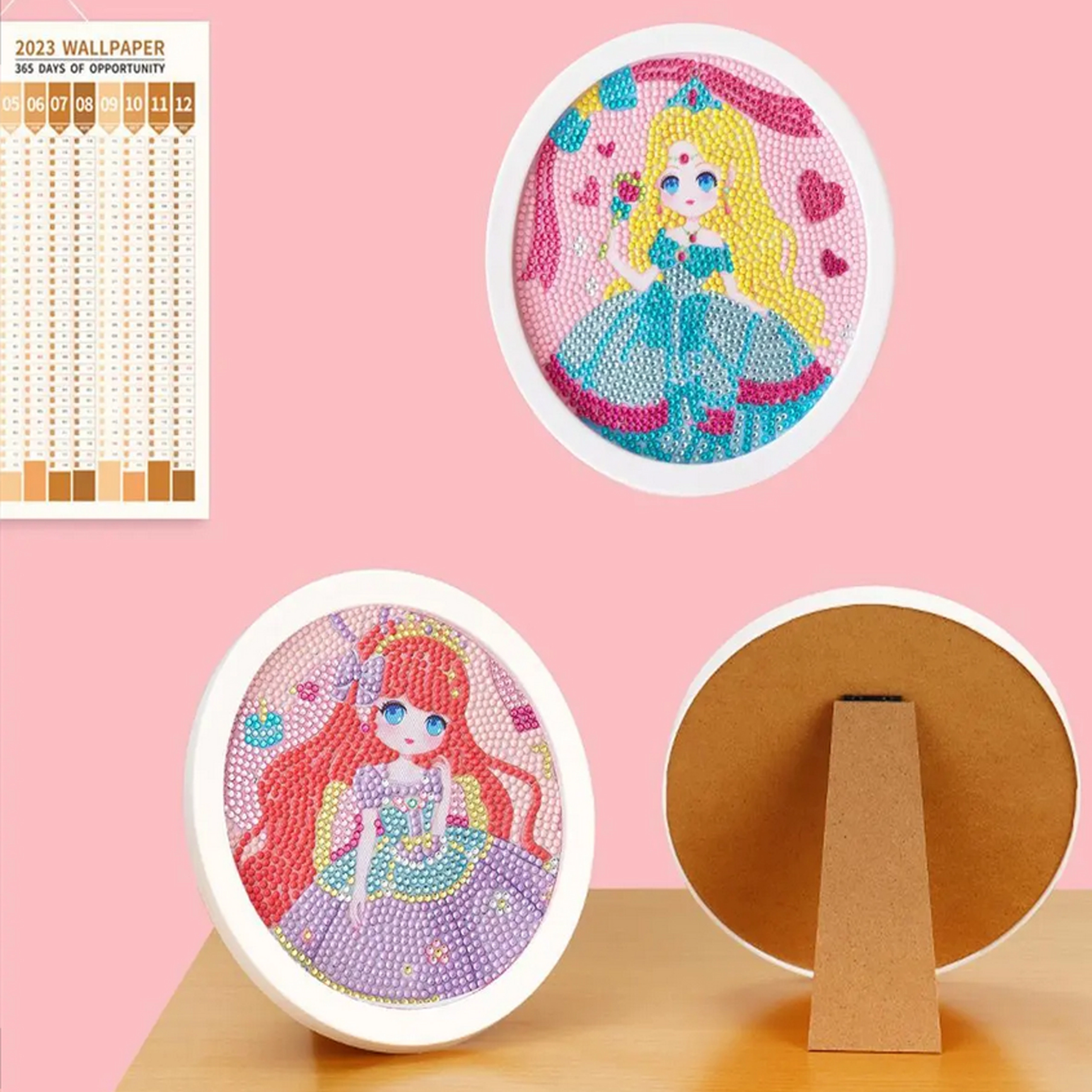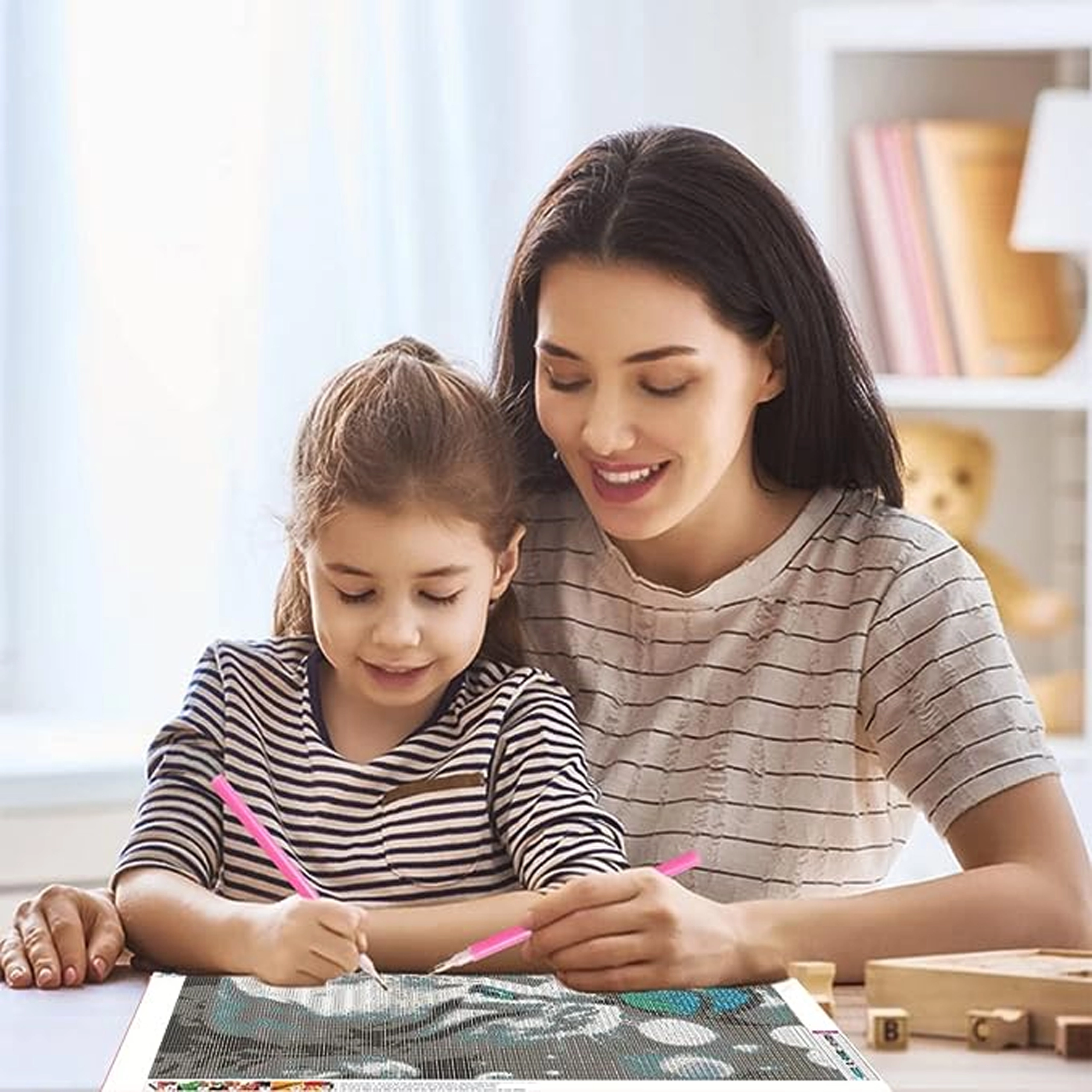 Included is a round frame with a stand for easy display of your finished piece on a desk or shelf. Practical accessories—applicator (pen), wax, and a grooved tray—make picking up and placing the gems simple and precise. The design is sent at random and is tailored to children’s difficulty levels, making the activity fun and stress-free.