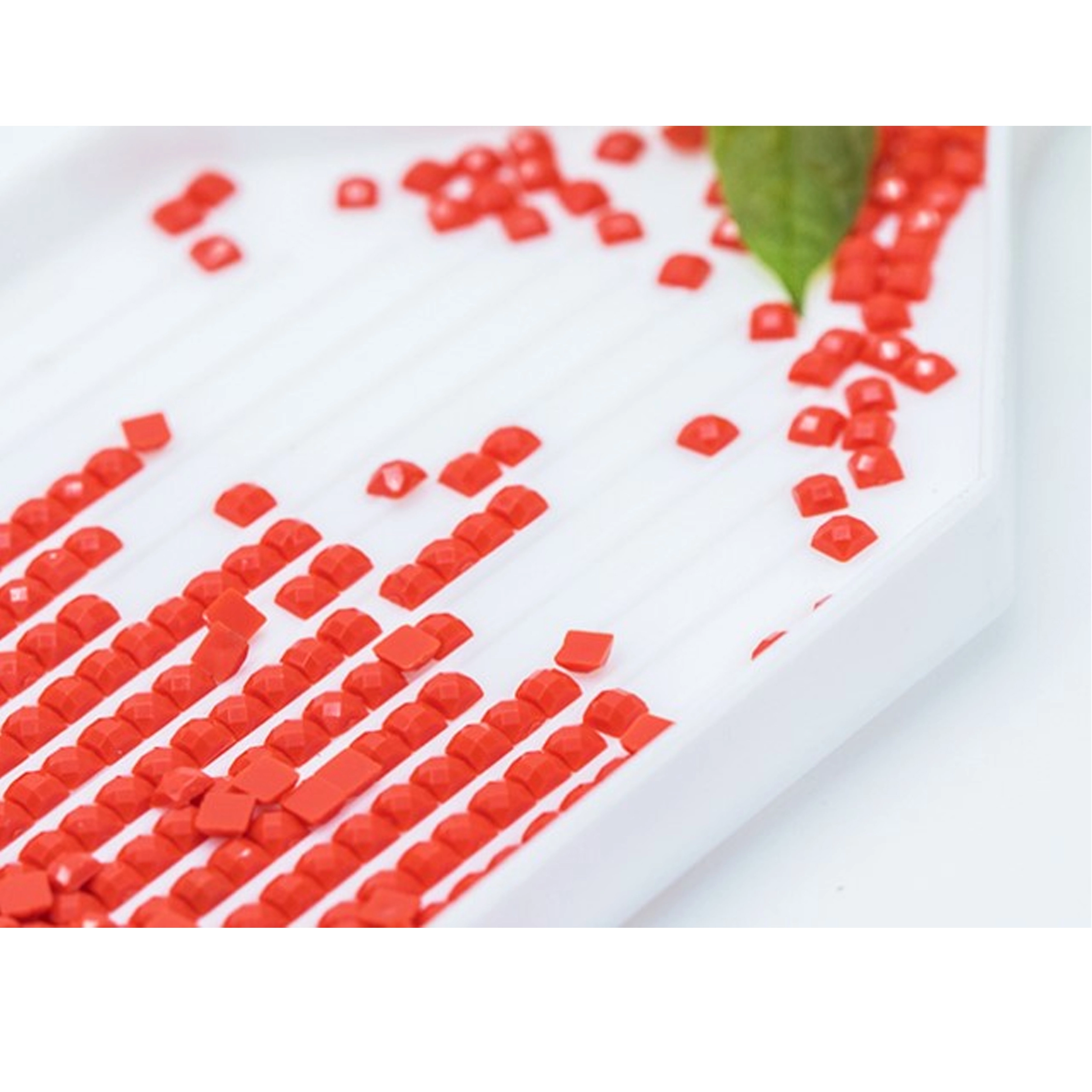 The box contains everything you need: an adhesive printed canvas, applicator, wax, and a sorting tray. Just open it and start creating—no extra accessories required.