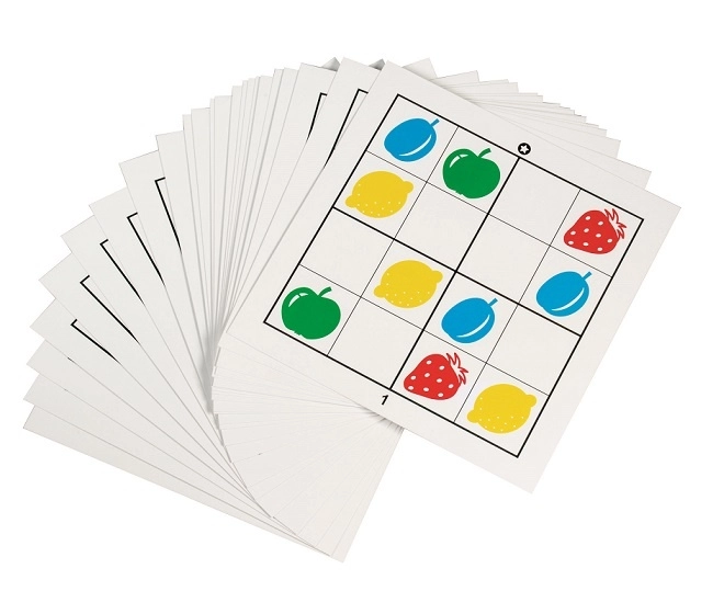 This smart version of sudoku for little ones brings simple rules and plenty of fun. Kids fill the empty squares in the 4×4 grid so that identical pictures don’t repeat in a row, column, or square—just like classic sudoku, only with cheerful fruit images.