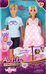 The Woopie family doll set brings children hours of creative fun. It includes a pregnant mom with a baby in her belly, a dad, and a newborn. The dolls feature stylish outfits, a modern look, and moveable limbs for easy posing. Made from safe and durable materials, packed in an attractive gift box.