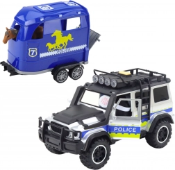 Discover the action-packed world of police work with a realistic set that combines a durable off-road vehicle and a trailer for transporting a horse. Thanks to the light and sound effects, play feels authentic and kids can easily create their own stories. Opening doors and a detachable trailer support imagination and fine motor skills.