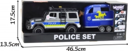 Head out on a mission with the police off-road car and detachable horse trailer by WOOPIE. Realistic light and sound effects, opening doors, and detailed design in a black-and-blue color scheme ensure exciting, creative play. Batteries are included so you can start right away.