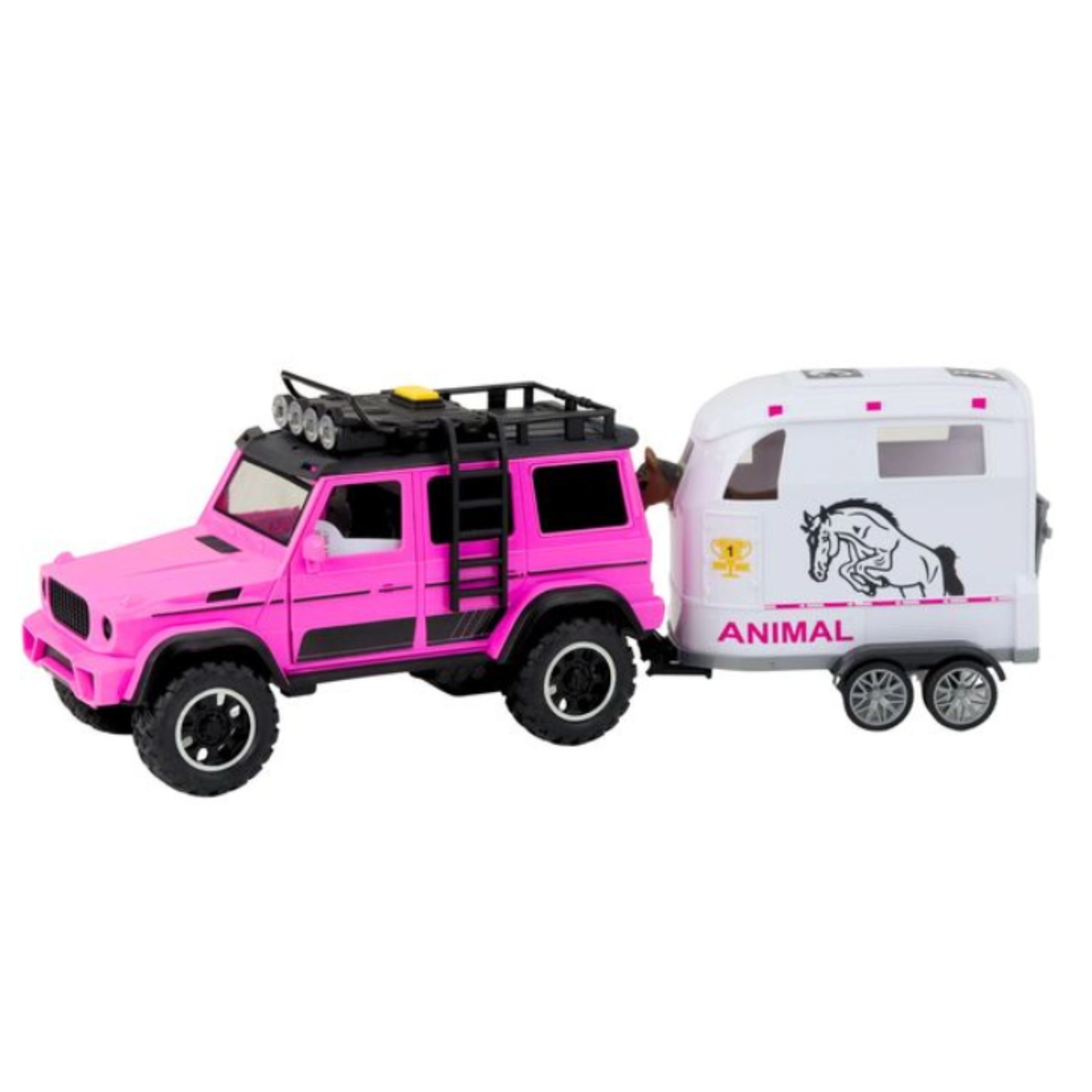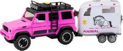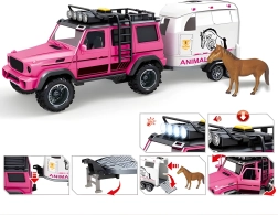 This finely detailed set is ideal for little animal and off-road vehicle lovers. The pink-and-white color combo stands out at first glance, and interactive features like lights, sounds, and opening doors deliver an authentic play experience. Thanks to the removable trailer, kids can play with the car, trailer, and horse separately to develop their imagination.