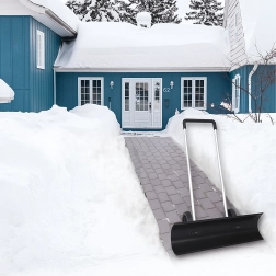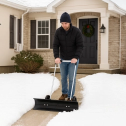The curved, extra-wide shovel creates a clean path and efficiently pulls snow from sidewalks and driveways.