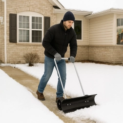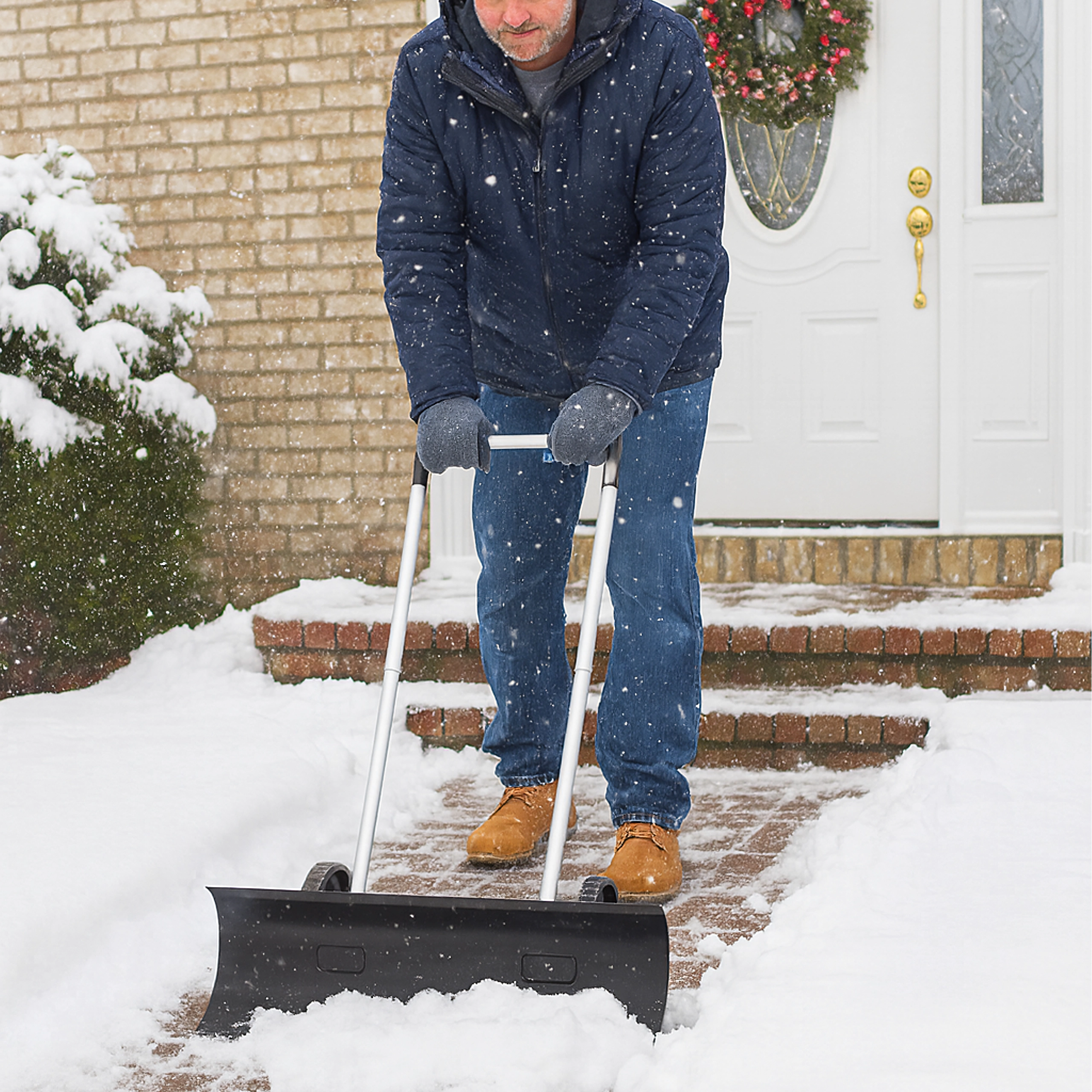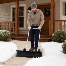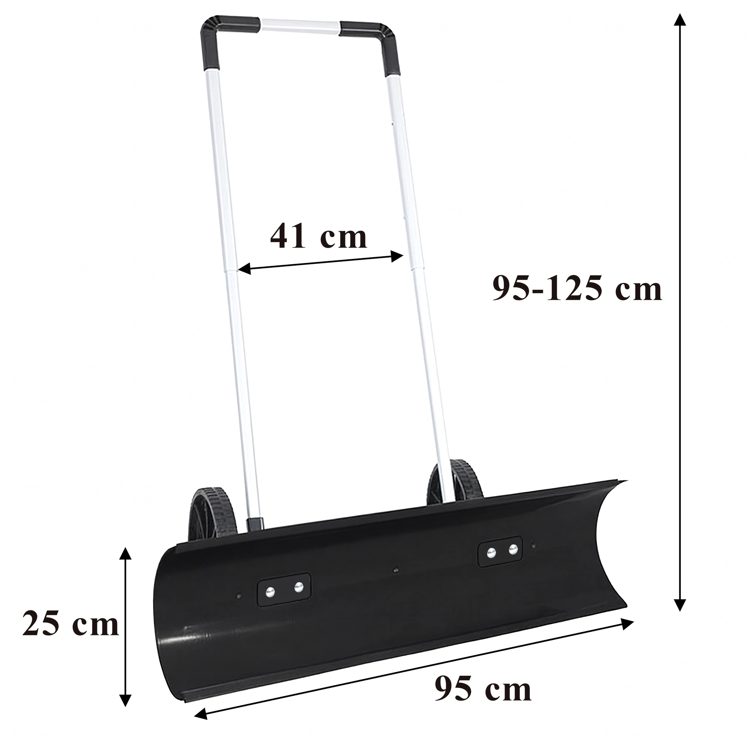 Turn strenuous snow shoveling into fast, smooth plowing. This manual snow plow on wheels with a 95 cm working width lets you simply push the snow ahead of you—no lifting. Integrated wheels reduce resistance, saving your back and hands, while the wide curved blade efficiently pushes snow off sidewalks and driveways. The durable PP, ABS, and steel construction ensures a long service life even in demanding winter conditions.