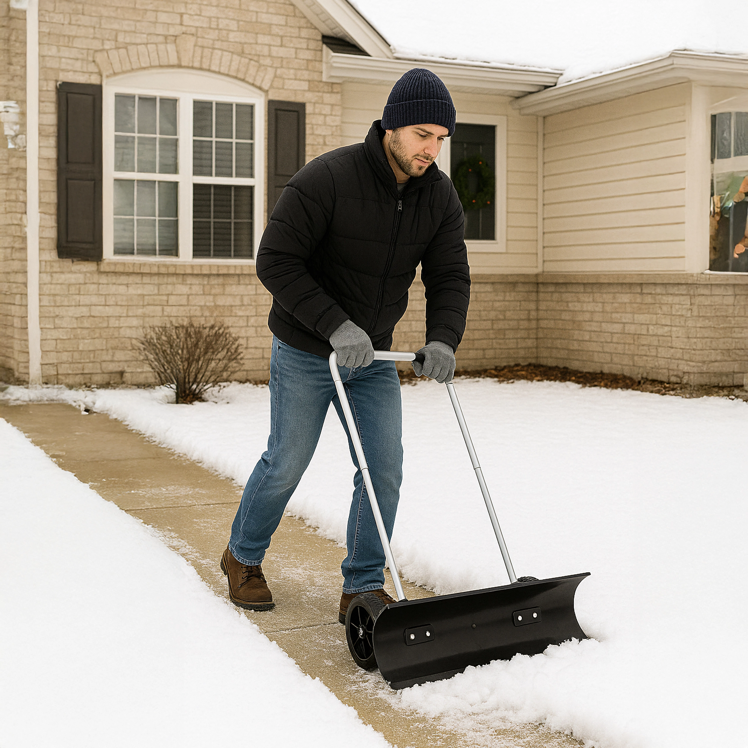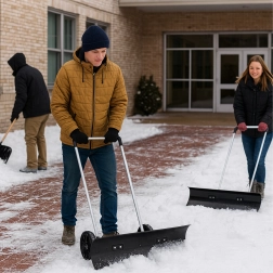 The plow is made from durable materials (PP, ABS, and steel) that withstand frost and moisture. The adjustable shaft length helps tailor the tool to the user’s height and reduce back fatigue. A great solution for households and facility managers who want to clear snow quickly, safely, and comfortably.