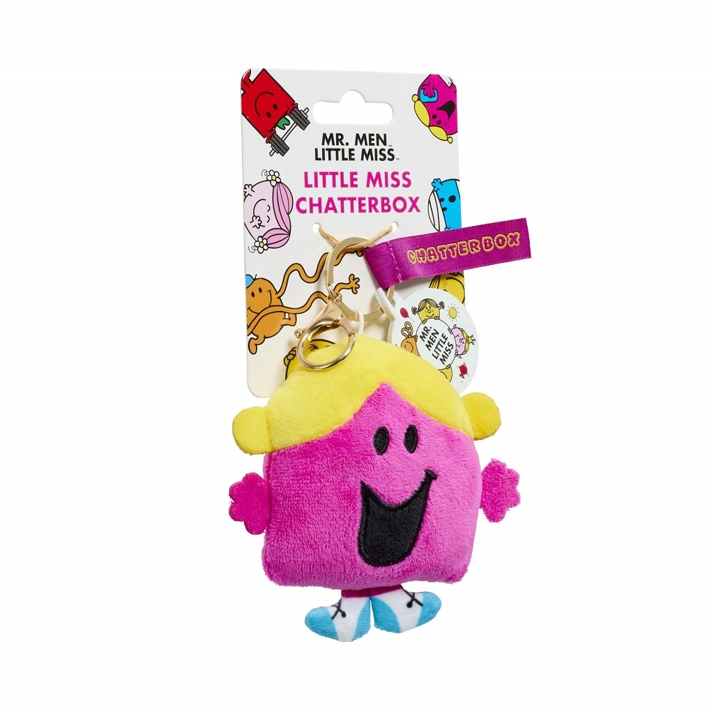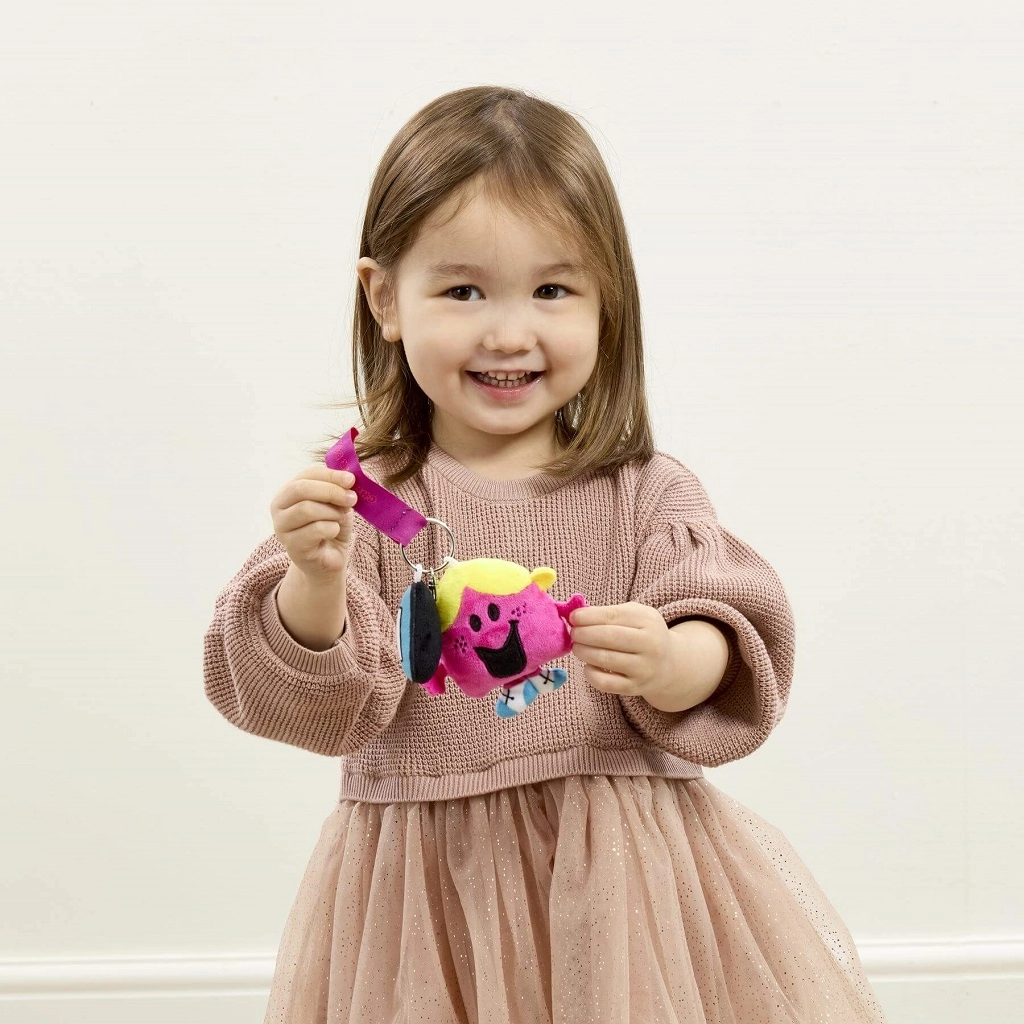 Bring a bit of the cheerful MR. MEN LITTLE MISS world into your everyday life. This official keychain with Little Miss Chatterbox is ideal as a small gift, a collectible piece, and a stylish accessory. Soft plush, yellow hair, and blue shoes make it a striking yet lightweight charm.