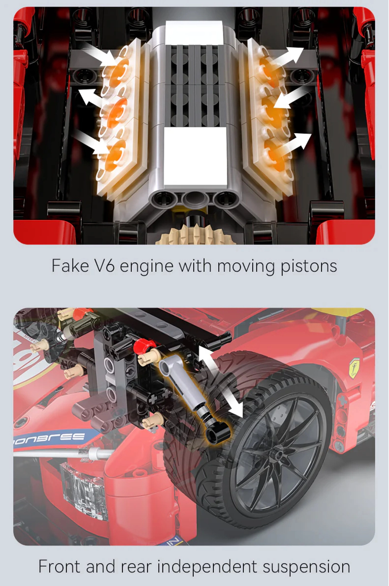 • Realistic functions: steering, suspension, V6 engine with moving pistons.