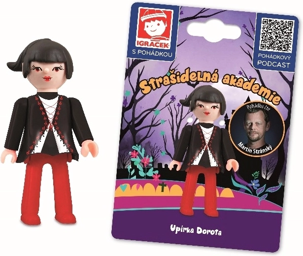 Discover the magic of the Igracek Vampire Dorota figure connected to the Spooky Academy fairy tale in podcast form. Kids will enjoy playing and listening to a story narrated by actor Martin Stránský that develops imagination, memory, and vocabulary. With these fairy-tale figures, they can put on a theater play and relive their favorite scenes. Made in the Czech Republic.