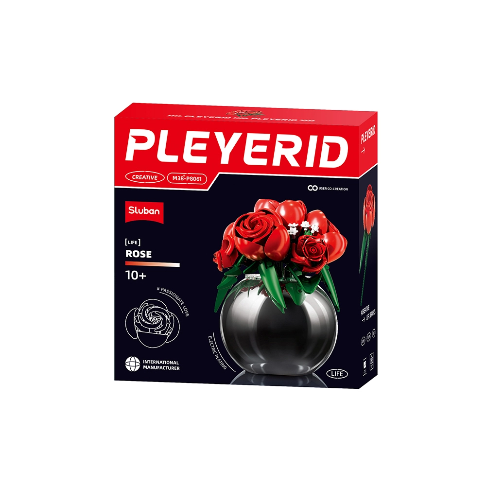 Discover elegant decor and creative fun in one: the red roses in a vase building set by Sluban. Realistically shaped roses, leaves, and white blossoms in a contrasting black vase never wilt, beautify any interior, and help develop fine motor skills, patience, and creativity. The durable ABS plastic parts are compatible with LEGO and other brands.