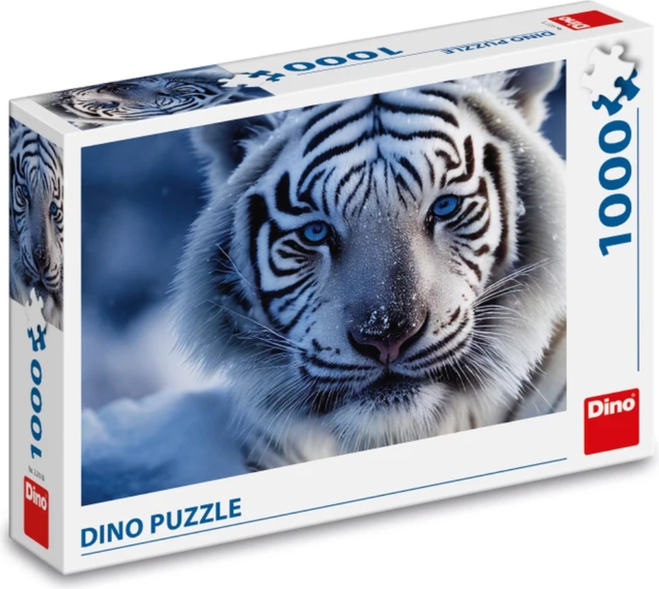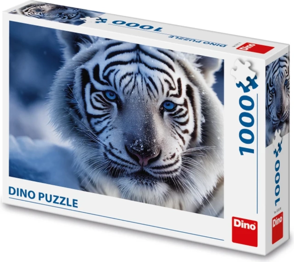 Enjoy relaxation and a challenge with an impressive puzzle featuring a white tiger by DINO. The 1000-piece jigsaw offers a detailed animal portrait with glowing blue eyes and precise printing for vivid colors and a great final image measuring approx. 66 × 47 cm.