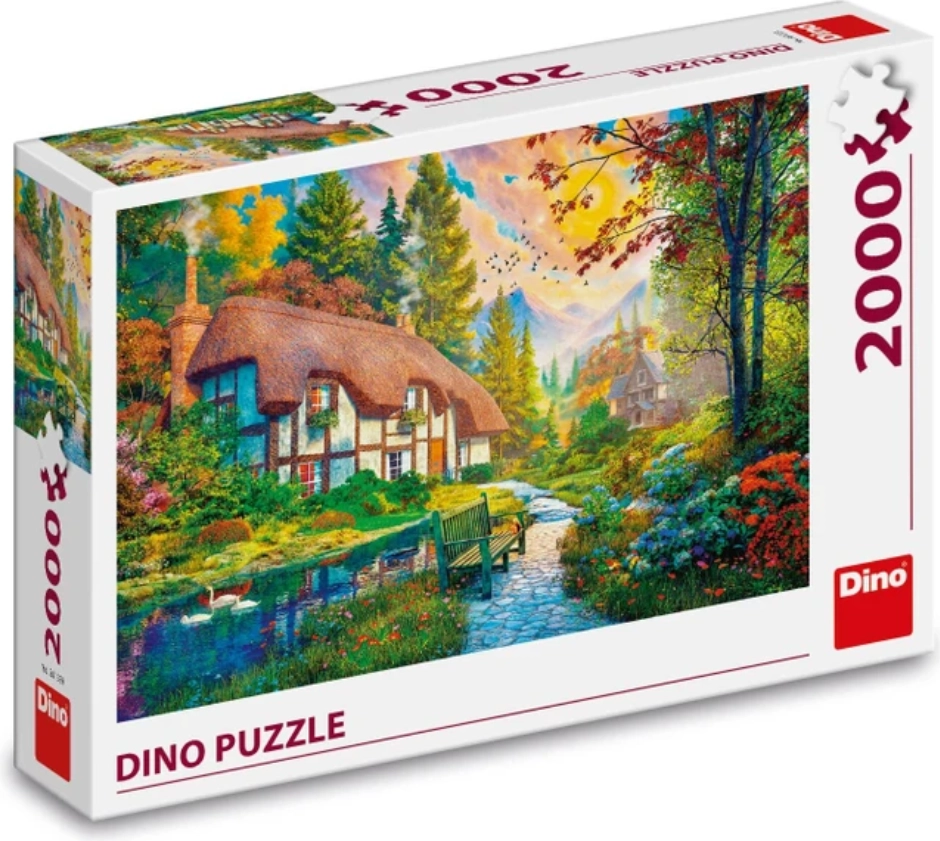 Discover the beauty of a colorful landscape with a stream, bench, and a charming cottage by the river. This large 2000-piece DINO puzzle is perfect for experienced puzzlers seeking a more demanding project with a gorgeous reward in the form of a detailed picture. The quality material and precise die-cut ensure the pieces fit together smoothly.