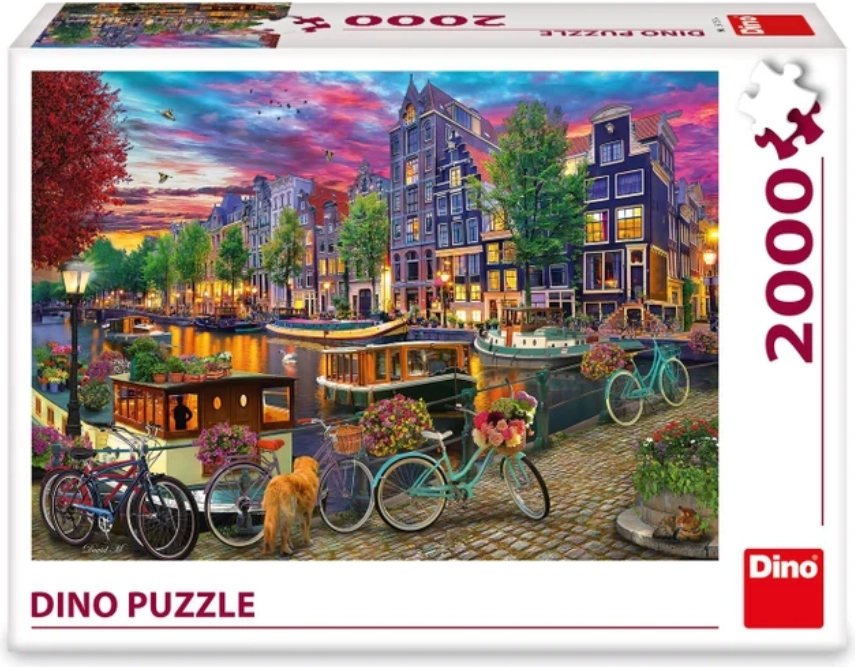 This large-format DINO puzzle brings the unique atmosphere of painted Amsterdam — canals, boats, flowers, and historic facades in vibrant colors. Thanks to the high count of 2000 precisely cut pieces, it will please demanding puzzlers and lovers of design motifs alike.