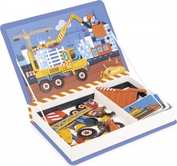 Discover the creative world of construction with the Janod Magnetibook On the Construction Site. Children can assemble different machines and scenes using magnets, developing their imagination, fine motor skills, and logical thinking.