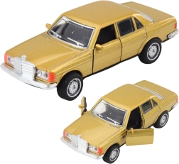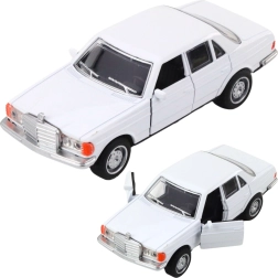 This realistic metal sedan model in 1:32 scale combines a durable metal build with plastic elements and functional details. Pull it back and it drives forward thanks to the pull-back mechanism, while lights and sounds elevate the driving experience. Opening front doors add authenticity and enhance any collection.