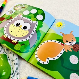 The creative workbook Stick and Trace: Happy Animals combines two favorite kids’ activities – sticker pasting and tracing/connecting the dots. Through play, children practice fine motor skills, patience, and recognizing animals. The workbook has 16 pages and is ideal for children aged 3 and up.