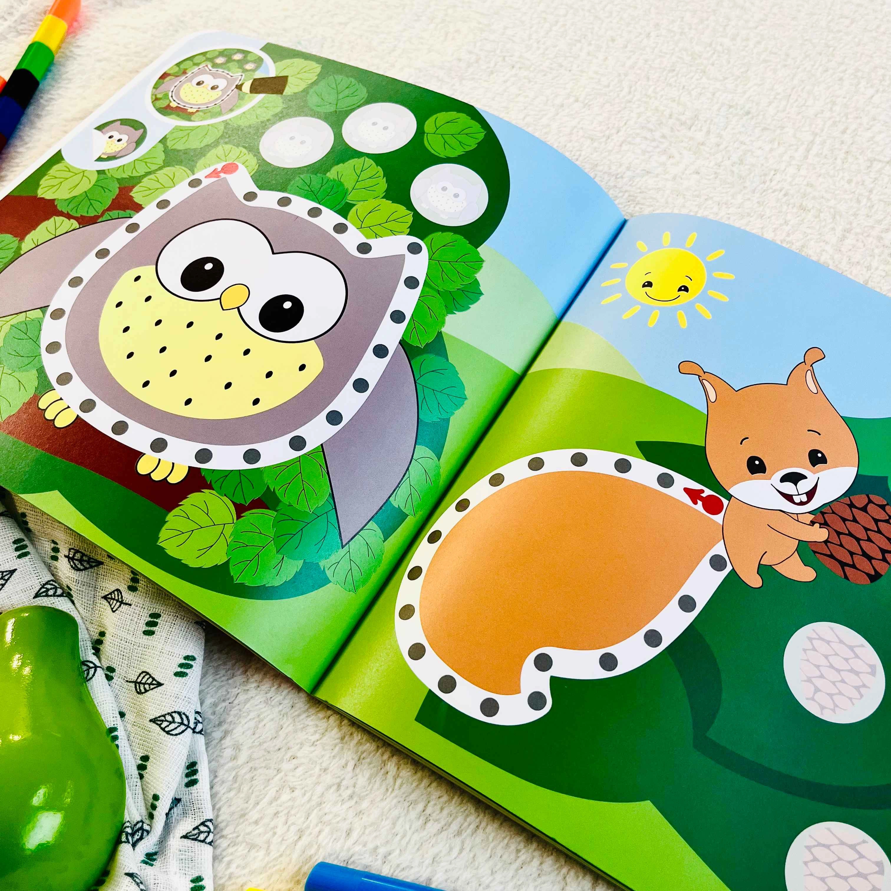 • Activities: sticking stickers, connecting the dots, tracing shapes