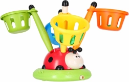 - 1× ladybug (main unit), 1× air splitter, 2× corrugated tubes, 2× straight tubes, 2× short and 2× long hurdle tubes, 1× foot pump – air launcher, 1× connecting tube, 4× basket, 8× bean bag, 12× tossing ring, 2× rocket + rubber rod, 4× plug, 1× remote control, manual (PL)