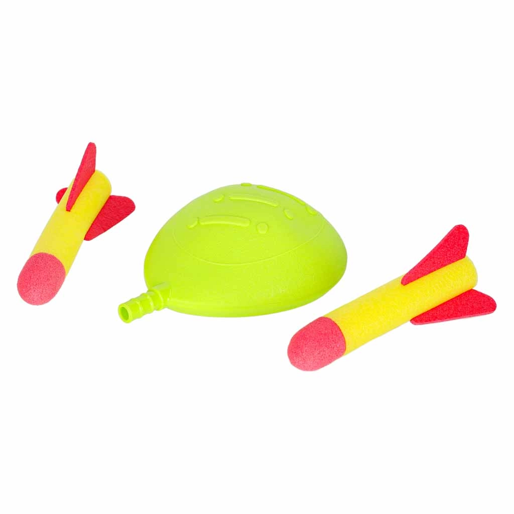 - 4 activities in 1 set: jumping over an obstacle, accurate tossing into baskets and onto rings, action rocket launching.