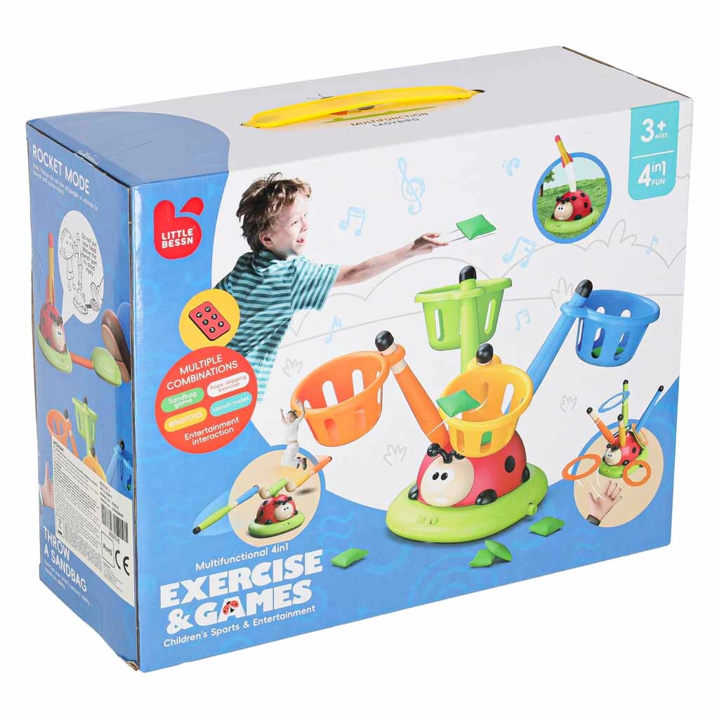 This multifunctional interactive 4-in-1 ladybug excites kids with movement and fun: it spins a jumping obstacle, lights up and makes sounds, works as a rocket launcher, and offers a target toss. Great for developing coordination, reflexes, and accuracy indoors and outdoors — kids will enjoy active play solo or in groups.