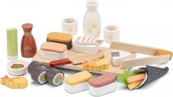 This richly equipped set lets children prepare their own “feast” – from nigiri and rolls to wasabi and soy sauce. It includes a serving tray, chopsticks with a child grip, a knife, a bowl, tongs/sticks, and even a sake bottle with cups. Each piece is finely painted for a realistic look.