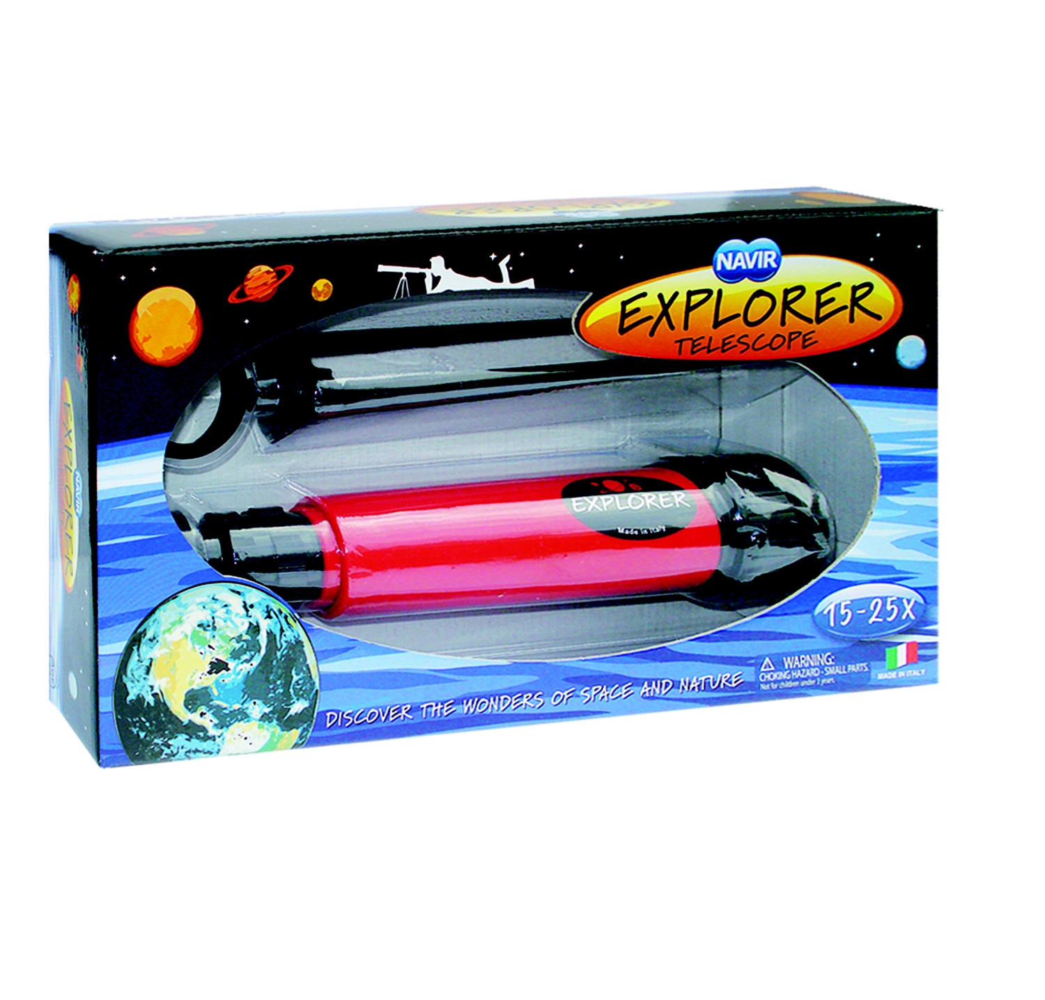 Discover the first steps into astronomy with the NAVIR children's telescope. This lightweight and durable device made of eco-friendly ABS plastic offers easy operation, a stable tripod, and 15× and 25× magnification using two eyepieces. It's perfect for observing landscapes, nature, and the night sky and fosters curiosity and interest in natural sciences for children aged 6 and up.