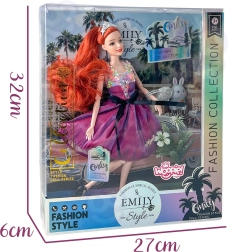 Meet the stylish doll Emi Fashion, enchanting in a pink ball gown with a sparkling bodice and long red hair perfect for brushing and styling. Thanks to her movable limbs, she easily strikes different poses, and the rich set of accessories — handbag, jewelry, headband, and elegant shoes — inspires creative play and storytelling. A great gift for young lovers of fashion and elegance.