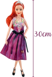 The Emi doll brings children a world of fashion and imagination. She wears a charming pink dress with a sparkling bodice and a black waist ribbon, a silver crown on her head, and elegant slippers on her feet. Her long, thick hair can be brushed and styled into different hairstyles, making each playtime unique and fun.