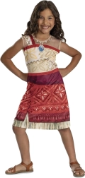 The costume is designed for children aged 7–8 years (recommended height 124–135 cm) and perfectly captures the beloved heroine’s look from Vaiana Moana 2. The asymmetrical strap, tribal print, layered skirt look, and “grass” trims give the outfit an authentic character.