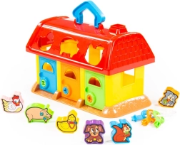Discover the fun didactic house with animals that combines shape sorting and key play. This colorful plastic toy supports the development of fine motor skills, shape and color recognition, and logical thinking. It includes 6 animal-shaped pieces and keys to open the doors for even more interactive fun.