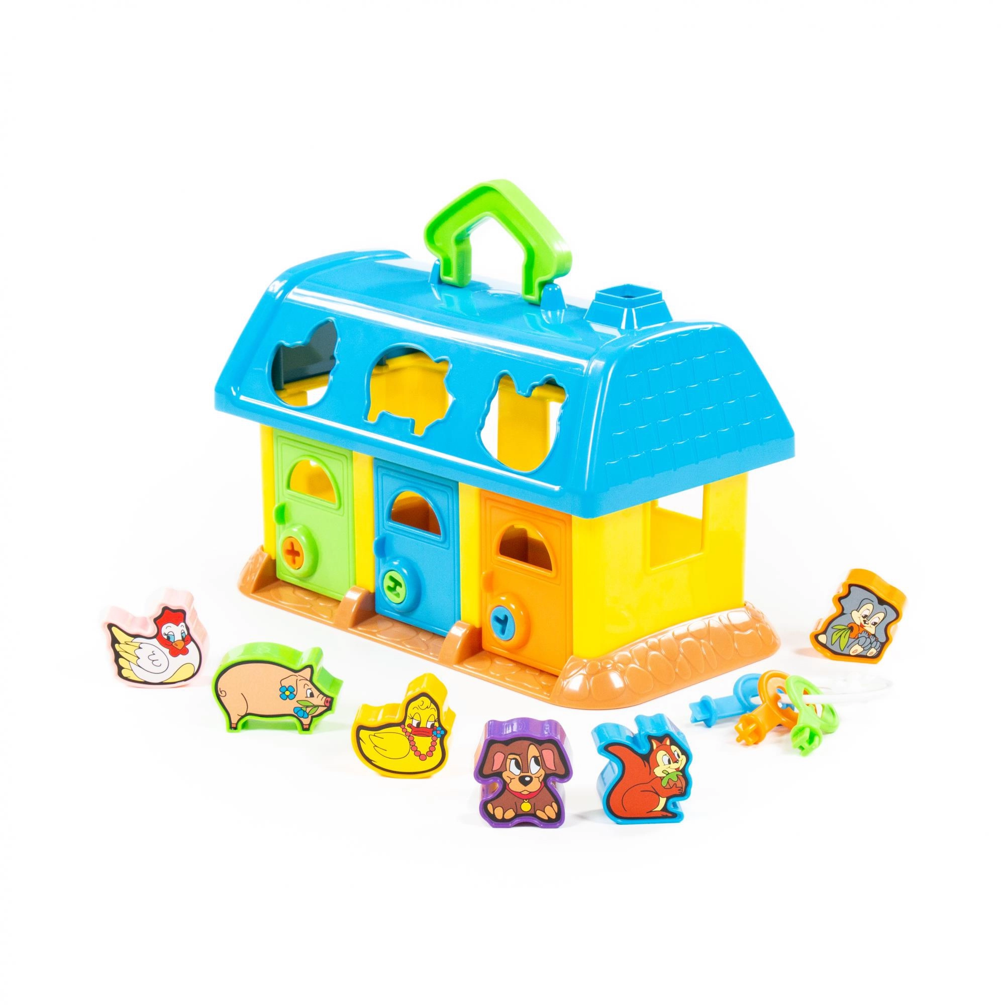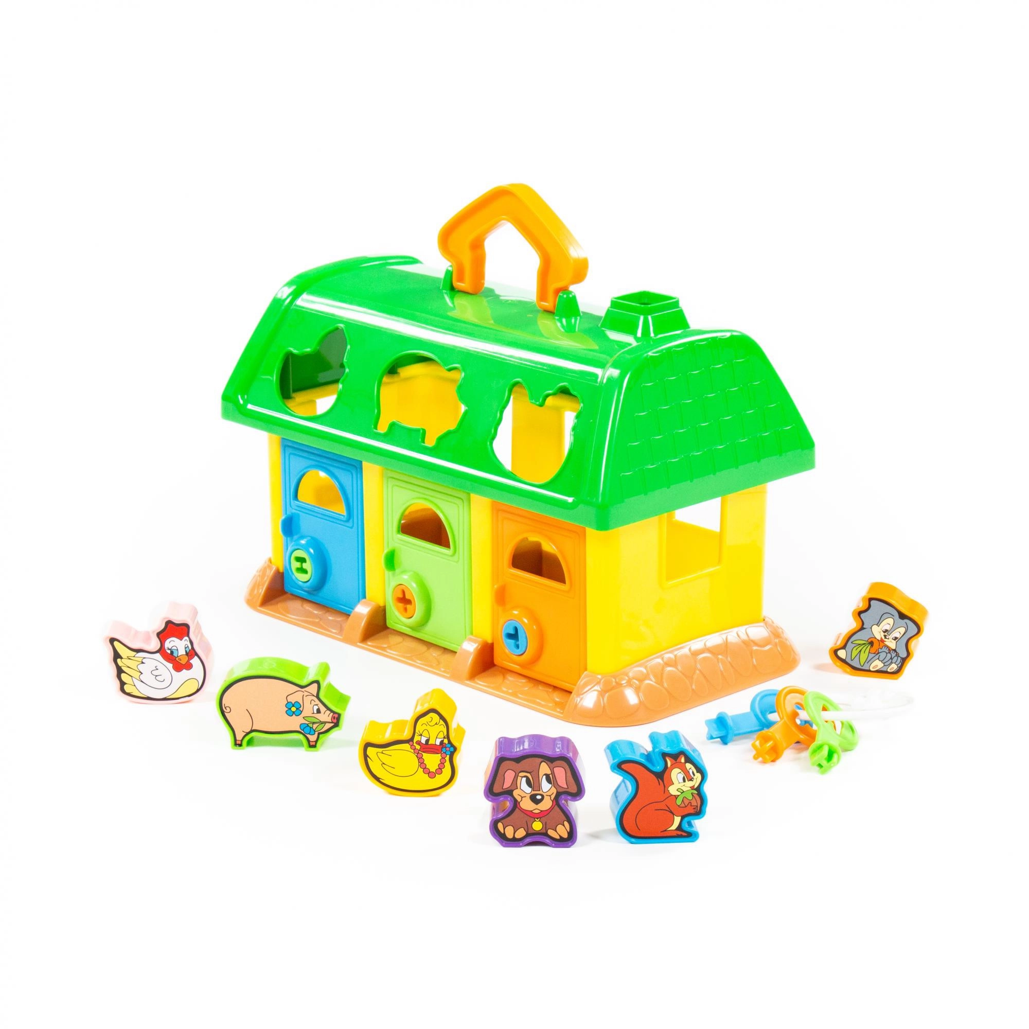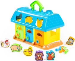 This colorful plastic house is a great choice for first didactic games. Children insert animal shapes into the matching openings on the roof and use the keys to open the doors to retrieve their treasures. The toy naturally supports hand–eye coordination, patience, and spatial imagination.