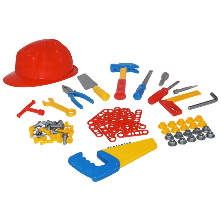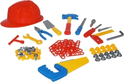 This richly equipped tool set offers children a safe and fun way to imitate adult work. The diverse components support finger dexterity, precision of movement, and logical thinking when connecting individual parts. Thanks to the helmet and wide range of tools, kids can enjoy realistic pretend play as craftsmen.