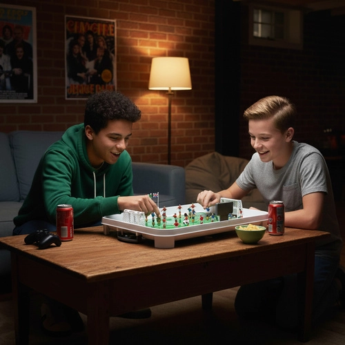 Enjoy thrilling matches on a compact pitch with a realistic layout of 11 players per team. The spring mechanism provides fast shots, passes, and goalkeeper saves without the need for power. The durable plastic build is lightweight and easy to carry, so you can play anywhere — at home, at the cottage, or with friends.