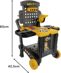 Thanks to the organizer and toolbox, every component has its place, the perforated board makes it easy to hang tools, and robust wheels ensure easy movement around the room. The set is ideal as a gift for children aged 3+—safe, fun, and consistently stimulating.