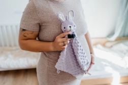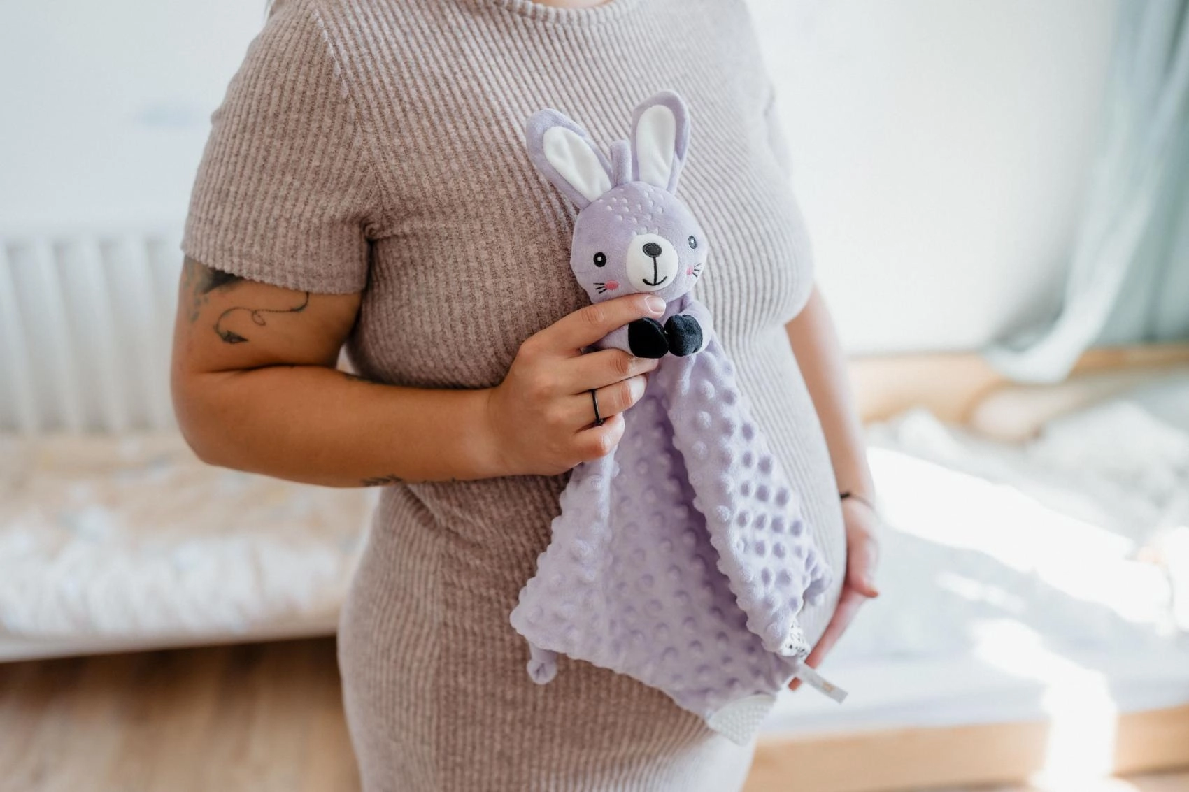 This soft plush bunny comforter is an ideal first companion for babies. The minky fabric with molded 3D dots provides pleasant tactile stimulation, calms, and helps create a sense of security during naps and nighttime. Thanks to its lightweight design, even tiny hands can grip it easily.