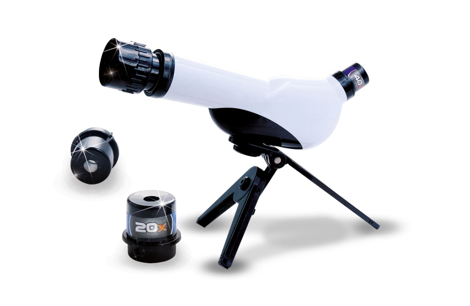 This educational telescope inspires kids to explore the stars, the Moon, and daytime sky phenomena. Simple controls and swap-out eyepieces provide a clear image and adapt to different types of observation. The included instructions help identify constellations and safely tackle first astronomy experiments.