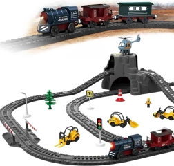 A tunnel hill, traffic signs, barriers, trees, figures, and construction vehicles add excitement and the atmosphere of a real railway.