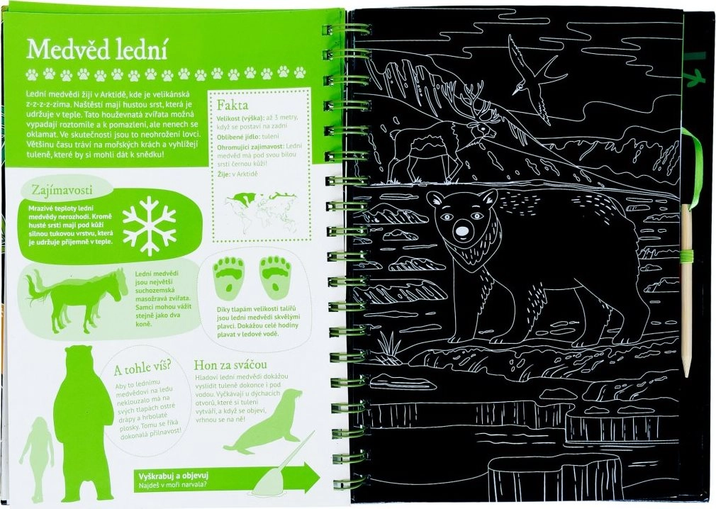 This imaginative book is divided into two parts—the first offers an overview of animals with plenty of interesting facts complemented by scratch-off pictures that delight with their playfulness. The second part features interactive activities such as quizzes, matching, searching, drawing, and filling in, helping children practice their new knowledge and stay entertained for hours.