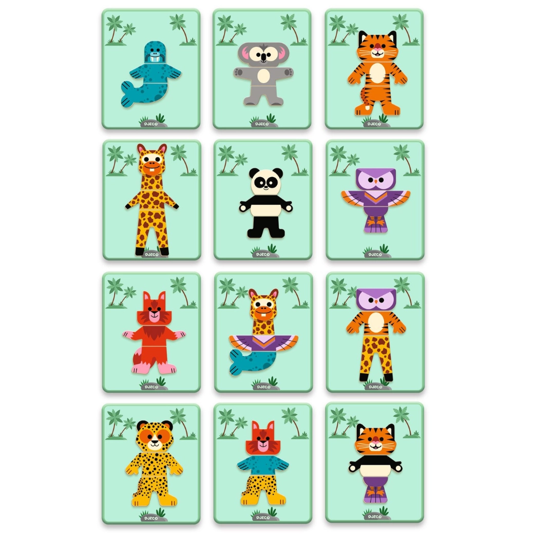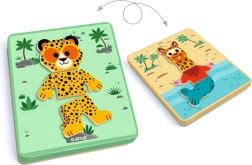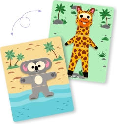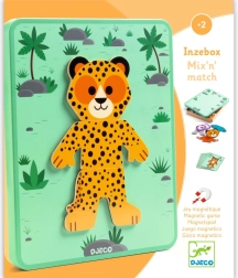 Djeco Inzebox Mix and Match is an original magnetic puzzle that lets children combine the heads, bodies, and legs of different animals. One set creates dozens of cheerful combinations—from a cheetah to a cute panda. The game supports creativity, hand–eye coordination, and fine motor skills.