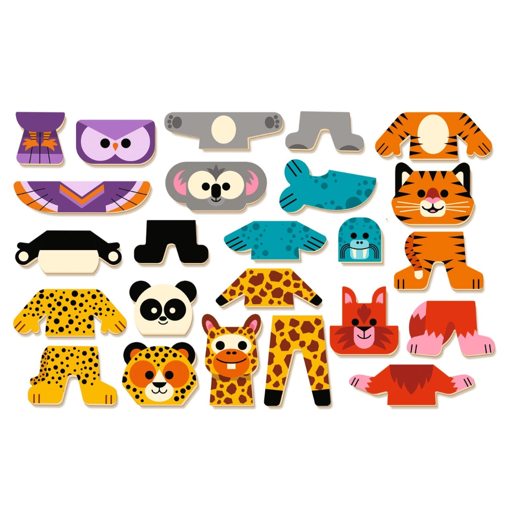 Mix heads, bodies, and legs to create fun characters. Children build imagination and logical thinking while playing.