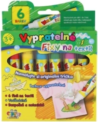 A fun set of washable fabric markers in 6 vibrant colors, ideal for creating original T-shirts, bags, and costumes. They wash out easily, are suitable for children aged 3+, and let you decorate fabric quickly and safely without permanent marks.
