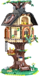 Build a unique treehouse library with a two-level layout: the ground floor has a library with shelves, windows, and ladders; upstairs you’ll find a cozy reading room with a telescope. The tree stands in a picturesque clearing with flowers and a birdhouse, and includes an opening roof and a balcony for birdwatching.