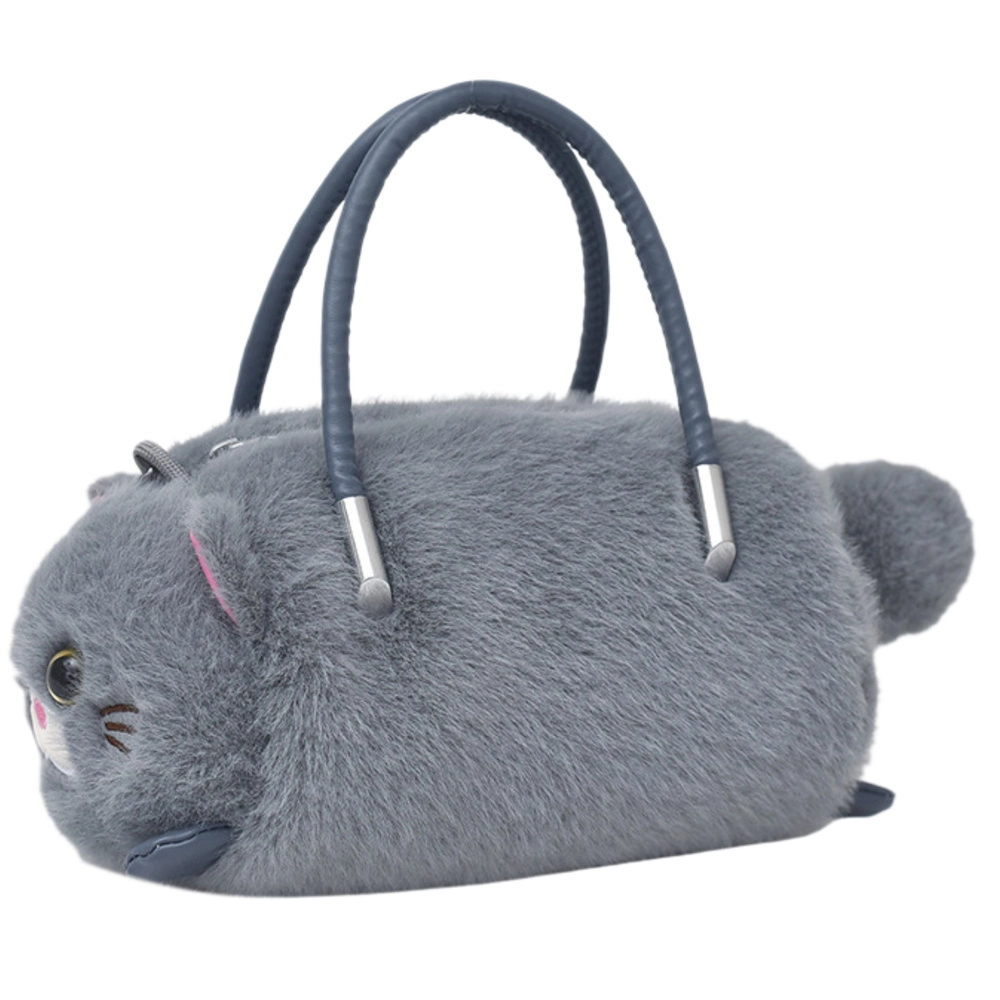 This plush cat-shaped handbag stands out at first glance with its velvety surface and cute details—ears, eyes, and nose. Its compact size is perfect for keys, phone, wallet, and other essentials, while the zipper keeps everything secure.
