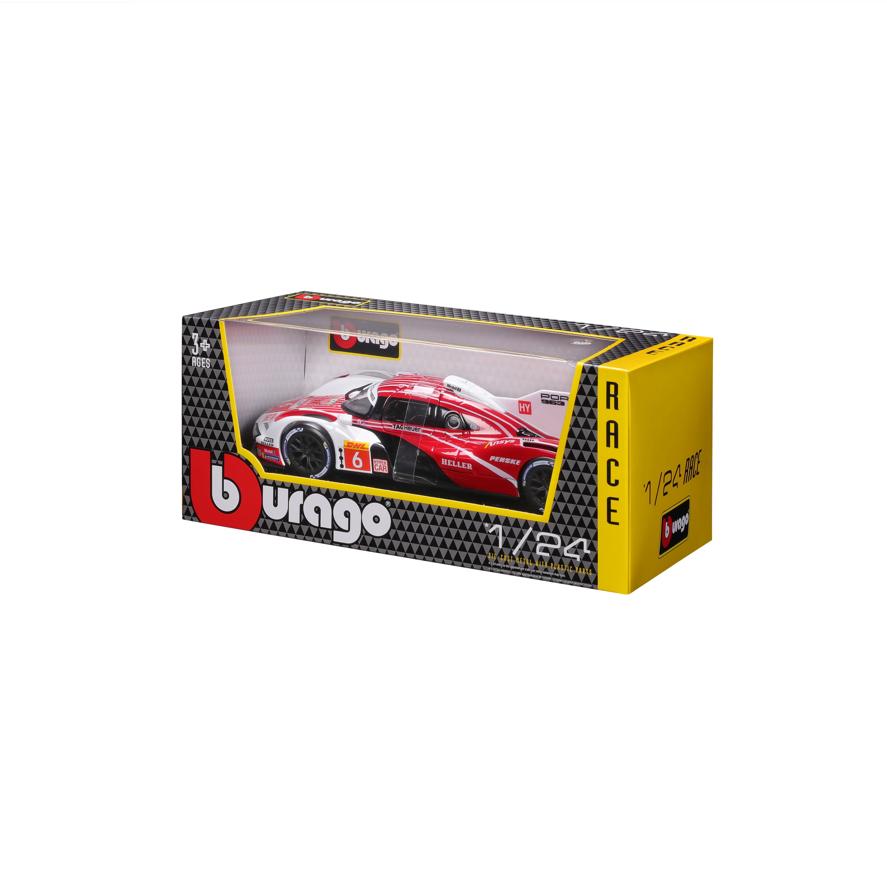 Enjoy the iconic endurance special PORSCHE 963 in 1:24 scale by Bburago. This metal model from the Racing collection offers detailed bodywork, realistic decals and aerodynamic elements including a large rear wing. Ideal for collectors and motorsport fans – rolling wheels and precise details make it an attractive piece for any display case.